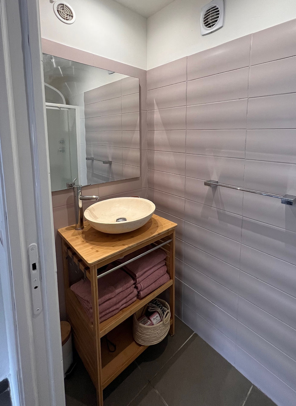 La salle d'eau est équipée d'une douche hydro-massante parfaite pour se détendre après une randonnée à Mafate !